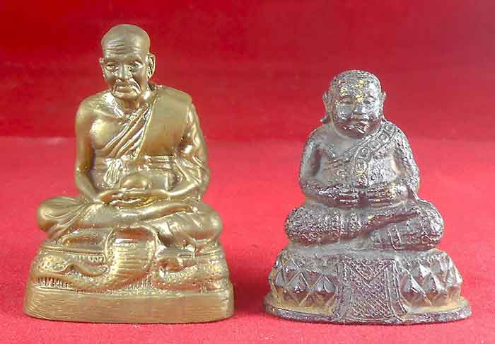 รูปหล่อบูชา หลวงพ่อทวด วัดช้างไห้ ขนาดหน้าตัก 3.5 ซ.ม. สูง 5.2 ซ.ม. เนื้อโลหะ + รูปหล่อหลวงพ่อสังกัจจายน์ ฐานบัวหงาย วัดหัวเขา