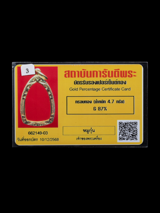 ชื่อพระเครื่อง กรอบทองสั่งทำอย่างดี ร้านทองดังภูเก็ตครับ น้ำหนัก4.7g เปอร์เซ็นต์ทอง87% ไม่ทราบที่ ยี่ห้อรุ่นครับ พระรังเก่า ชุดนี้ผมไปเหมาบ้านที่กรุงเทพฯมาได้มาหลายอย่าง ทยอยลงครับ วัดใจเท่าไหนเท่านั้นทุกรายการครับ