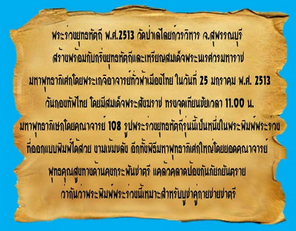 จัดสร้างโดยพระรักขิตวันมุนี ( ถิร ) วัดป่าเลไลยก์ สุพรรณบุรี