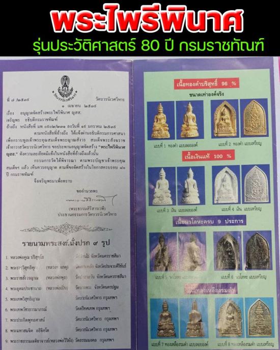 รูปหล่อลอยองค์ พระไพรีพินาศ ญสส รุ่นประวัติศาสตร์ ๘๐ ปี กรมราชทัณฑ์ วัดบวรนิเวศวิหาร พ.ศ.2538 กล่องเดิม