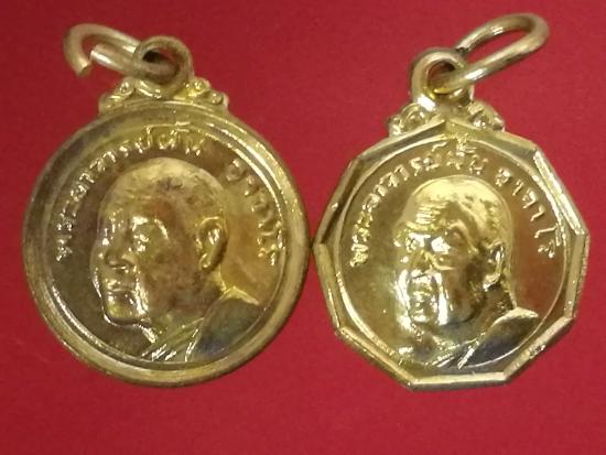 เหรียญแปดเหลี่ยม+เหรียญกลมเล็ก พระอาจารย์ฝั้น อาจาโร วัดป่าอุดมสมพร สกลนคร |