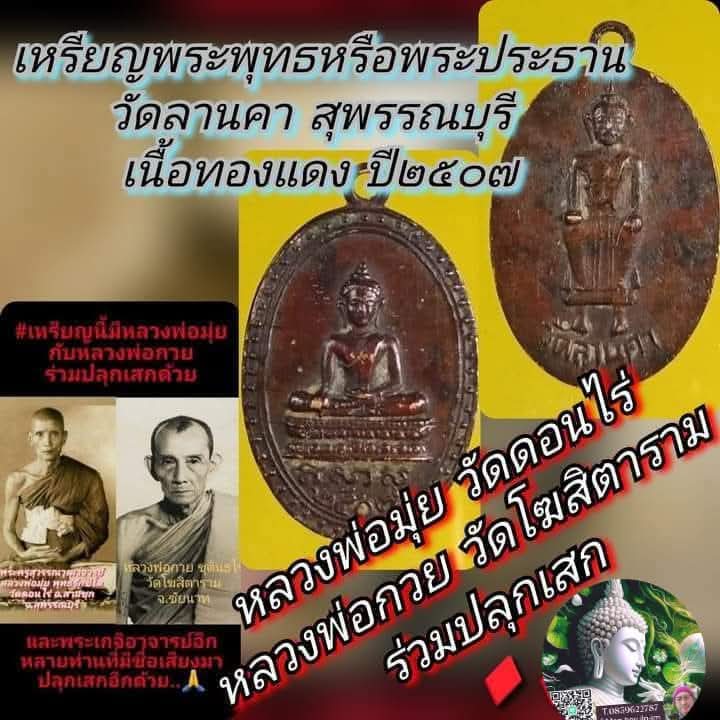 #เหรียญพระพุทธ หรือ"พระประธาน" วัดลานคา อำเภอบางปลาม้า จังหวัดสุพรรณบุรี ปี ๒๕๐๗ เนื้อทองแดง เข้มขลัง ประสบการณ์เยี่ยม เหรียญสวยเดิม เหรียญดี