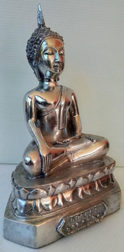 พระบูชาปางมารวิชัย เนื้ออลูมิเนียมขัดเงา ขนาดหน้าตัก 4 นิ้ว ฐาน 6 นิ้ว สูง 9 นิ้ว |