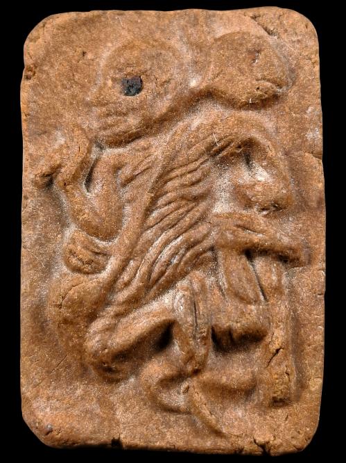 พิมพ์ฤาษีท่องสวรรค์ หลวงพ่อฤาษีลิงดำ ปี2531 เนื้อดินเผา ด้านหลังปั้ม มั่งมีศรีสุข |