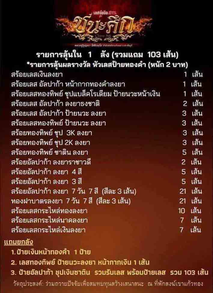 เลสพร้อมสายหนัก4บาท 2เส้น หลวงปู่บุญมา โชติธมุโม จ.ปราจีนบุรี รุ่นชนะศึก ปี 2564 ซีลเดิม ไปลุ้นรายการพิเศษเอง ทีเดียวแดง (3) |