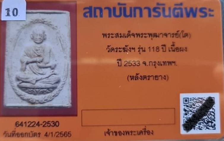 พระเครื่องของสมเด็จพระพุฒาจารย์โต วัดระฆังโฆสิตาราม ได้รับความนิยมทุกรุ่น โดยเฉพาะรุ่น 118 ปี ซึ่งถูกบรรจุอยู่ในรายการประกวดพระเครื่องทุกครั้ง จัดสร้างเมื่อ 22 มิ.ย. 2533 พระสมเด็จพิมพ์ปรกโพธิ์ ด้านหลังมีโค๊ต สภาพสวยมาก ไม่ผ่านการใช้ เก็บดี สมบูรณ์ ผิวเดิมๆ แท้ดูง่าย สบายใจ พระดี อนาคตไกล