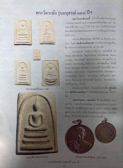 - พระสมเด็จวัดระฆัง รุ่นอนุสรณ์ 118 ปี พิมพ์รูปเหมือนสมเด็จพุฒาจารย์โต ทำพิธีมหาพุทธาพิเษก ณ อุโบสถวัดระฆัง พ.ศ. 2533 ผสมมวลสารผงวิเศษ 5 ประการ ผงพระเก่าวัดระฆัง ผงเก่าพระสมเด็จกรุบางขุนพรหม นับอายุการสร้างถึงปัจจุบันนี้ก็หลายปีแล้วครับ องค์พระเนื้อเก่าเหลือง สวยงามมากเพราะผสมผงมวลสารเก่ามากนั่นเอง