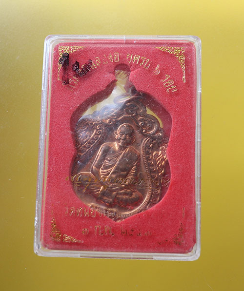 เหรียญเสมา 6 รอบ หลวงพ่อสาคร วัดหนองกรับ เนื้อทองแดง หมายเลข ๖๘๔๕ ผิวไฟแดงๆ ทั้งหน้าหลัง ซีลเดิมพร้อมกล่องเดิม ปี 2553