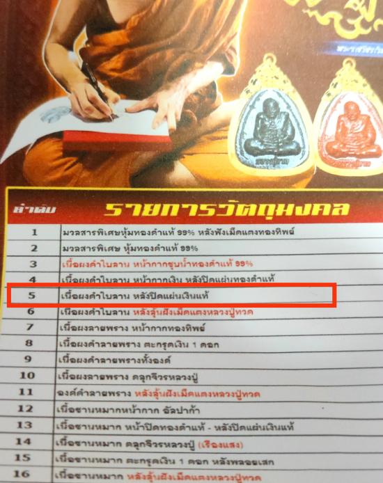 รายการที่5 เนื้อผงดำใบลาน ฝังพลอย เลขสวย No.30