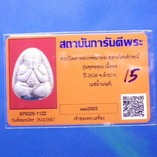พระปิดตาแช่น้ำมนต์ หลวงพ่อเกษม รุ่นพุทธคุณ ฝังตะกรุดสังฆวานร ปี 2538. ..15.. (68.6.24