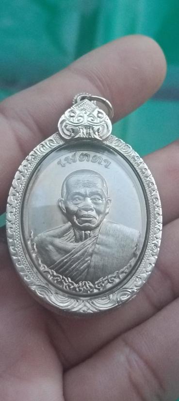 หลวงปู่คูณ ปริสุทโธ วัดบ้านไร่ อ.ด่านขุนทด จ.นครราชสีมา รุ่นเมตตา ห่มเฉียง เนื้ออัลปาก้า พร้อมเลี่ยมเงิน ปี 2555