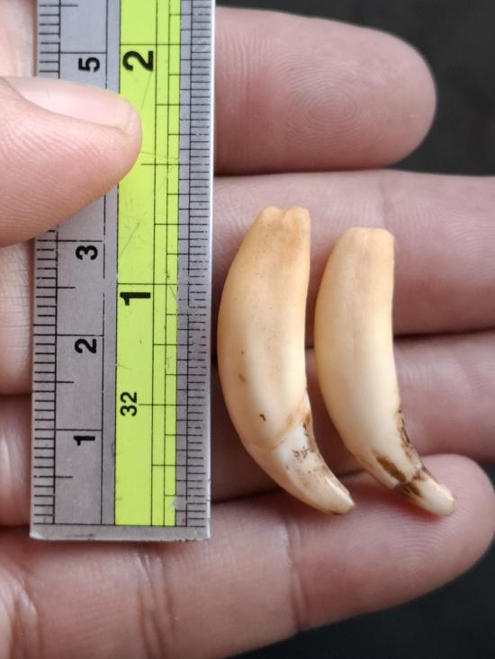 เขี้ยวเสือไฟพร้อมกรามล่างซ้าย,ขวา ยกคู่ ขนาดเทียบตามภาพครับ