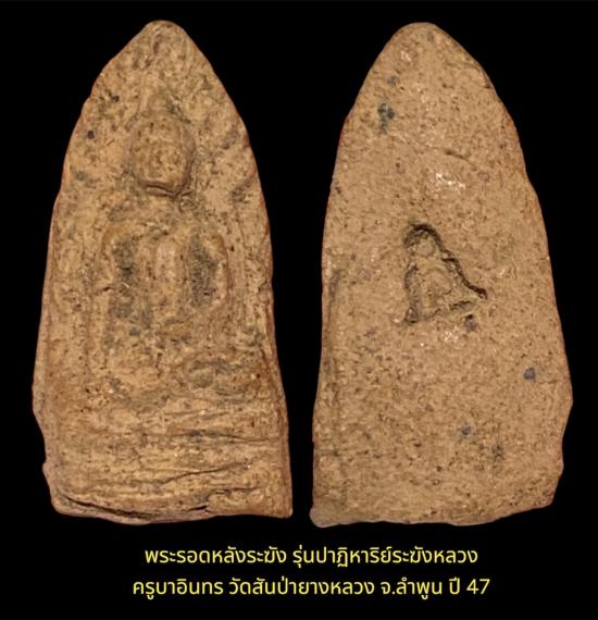 พระรอดหลังระฆัง รุ่นปาฏิหาริย์ระฆังหลวง ครูบาอินทร วัดสันป่ายางหลวง จ.ลำพูน ปี 47 เคาะเดียว