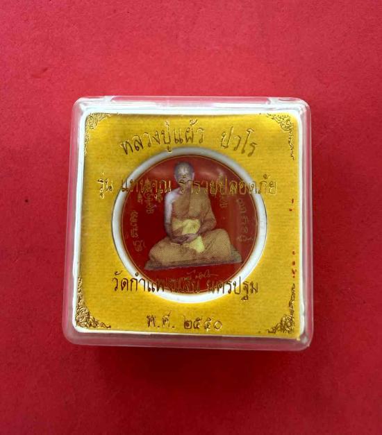 หลวงปู่แผ้ว เนื้อกระเบื้องเบญจรงค์ สีแดง ขนาด 3.5 ซม. รุ่น แทนคุณ ร่ำรวยปลอดภัย วัดกำแพงเสน จ.นครปฐม พร้อมกล่องเดิมๆ |