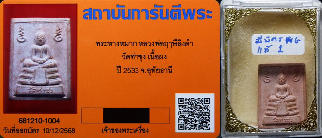พระหางหมาก หลวงพ่อพระราชพรหมยาน (ฤาษีลิงดำ) วัดท่าซุง ปี2533 จ.อุทัยธานี ชัดเต็มสวยเดิมๆ พร้อมบัตรรับรอง G-Pra
