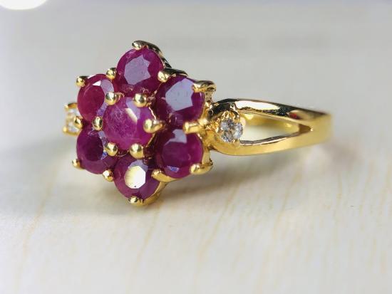 แหวนเงินแท้ 925 เต็มเปอร์เซ็น ชุบทองคำแท้ พลอยทับทิม