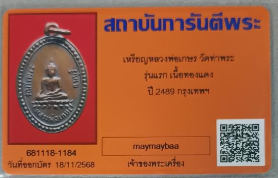 เหรียญหลวงพ่อเกษร วัดท่าพระ รุ่นแรก เนื้อทองแดง ปี2489 พร้อมบัตรรับรอง