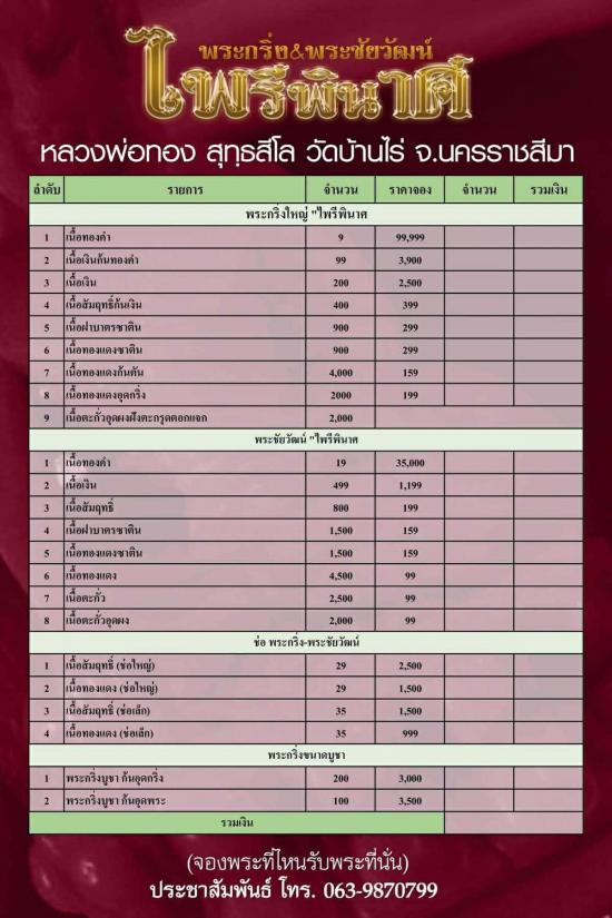!!!! 10 องค์ !!!!พระชัยวัฒน์ รุ่นไพรีพินาศ หลวงพ่อทอง วัดบ้านไร่ ปี 2565 ซีลเดิม
