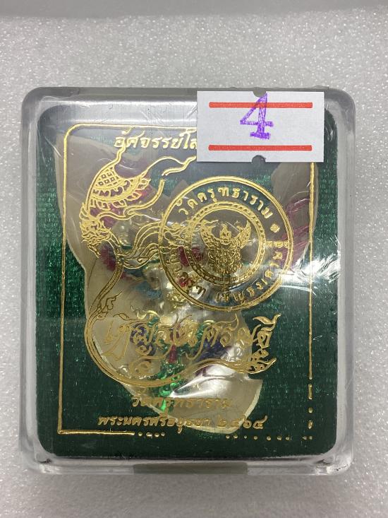 พญาครุฑทรงมหิธานุภาพ เชิญธงเศรษฐี วัดครุฑธาราม จ.พระนครศรีอยุธยา พิมพ์ใหญ่ สูง 4.5 ซ.ม. เนื้อตริยะโลหะ (สัมฤทธิ์ผล) ชุบ 2 K ลงยาราชาวดี ซีลเดิมยังไม่ได้แกะ