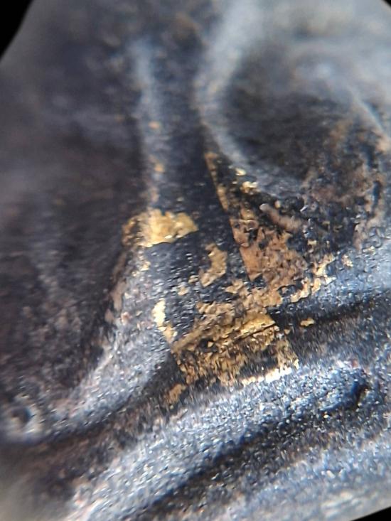 จุดเด่นคือมี คราบทองเก่า ปรากฏทั้งด้านหน้าและด้านหลัง แสดงถึงการผ่านการบูชามายาวนาน ไม่ใช่การปิดทองใหม่ ลักษณะพิมพ์เป็นพระปิดตานั่งสมาธิ มือปิดพระพักตร์ สื่อถึงการปิดกั้นสิ่งไม่ดี กันคุณไสย และเสริมความมั่นคงทางจิตใจ เหมาะสำหรับผู้ที่ต้องการพระสายเข้ม บูชาติดตัวหรือพกพาได้ดี