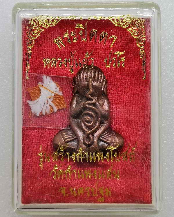 หลวงปู่แผ้ว ปวโร .. พระปิดตายันต์ยุ่ง พิมพ์ใหญ่ เนื้อทองแดงเถื่อน ปี 47 มีเม็ดแร่ 1 เม็ด นับเป็นพระปิดตายันต์ยุ่งรุ่นแรกวัดกำแพงแสน ออกปีเดียวกับใบขี้เหล็กรุ่นแรก ปี 47 พร้อมกล่องเดิมจากวัด สร้าง 2,500 องค์เท่านั้น ไม่ผ่านการใช้มาก่อน รับประกันพระแท้ตามกติกา