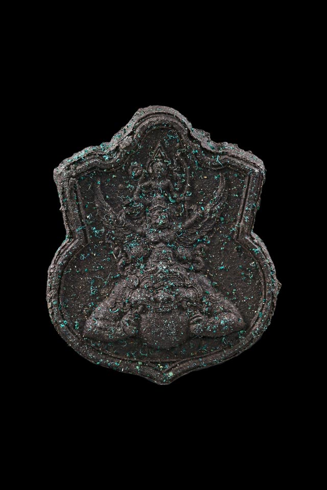 พระนารายณ์ทรงครุฑประทับบนพระราหู ท่านเจ้าคุณธงชัย วัดไตรมิตร เนื้อผงพุทธคุณ รุ่นแรก หลังยันต์ดวงเนื้อเงิน ปี 2545