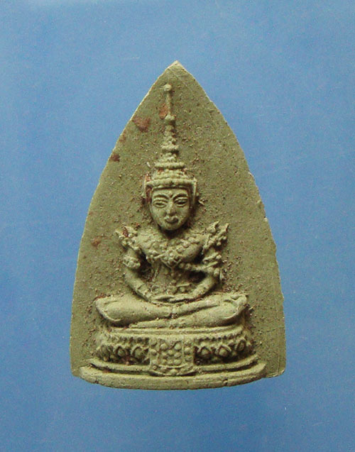พระแก้วพิมพ์เล็กเนื้อใบตอง หลังโรยเกษาและผงตะไบทองครับ
