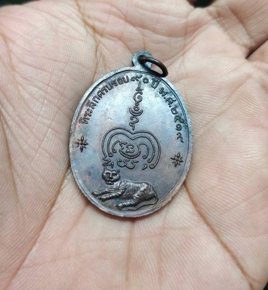 เหรียญหลังเสือ หลวงพ่อทองอยู่ วัดหนองพะอง จ.สมุทรสาคร ปี 2519 บล็อกจุดนิยม เนื้อทองแดง