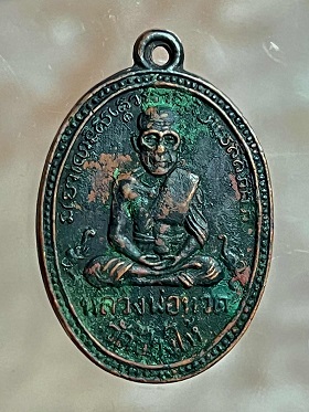 เหรียญลป.ทวด วัดเอี่ยมวรนุช ปี 2506 เนื้อทองแดงรมดำ สภาพตั้งหิ้ง ด้านหน้ามีคราบ ด้านหลังสวย