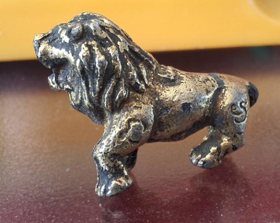 สิงห์โตทองมหาลาภพระอาจารย์บัว เตมิโย วัดหลักศิลามงคล นครพนม พ.ศ.2519 เนื้อโลหะกะไหล่ทอง