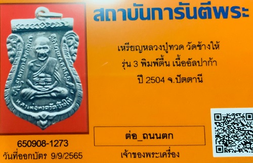 หลวงปู่ทวด เหรียญเสมารุ่น 3 เนื้ออัลปาก้าปี2504 สภาพสวยเดิมๆ ผิวหิ้ง จมูกโด่งๆเลี่ยมพาสติกกันน้ำใว้ สวยวิ้งๆครับ มาพร้อมบัตรการันตี แท้และเดิมแน่นอนครับท่าน