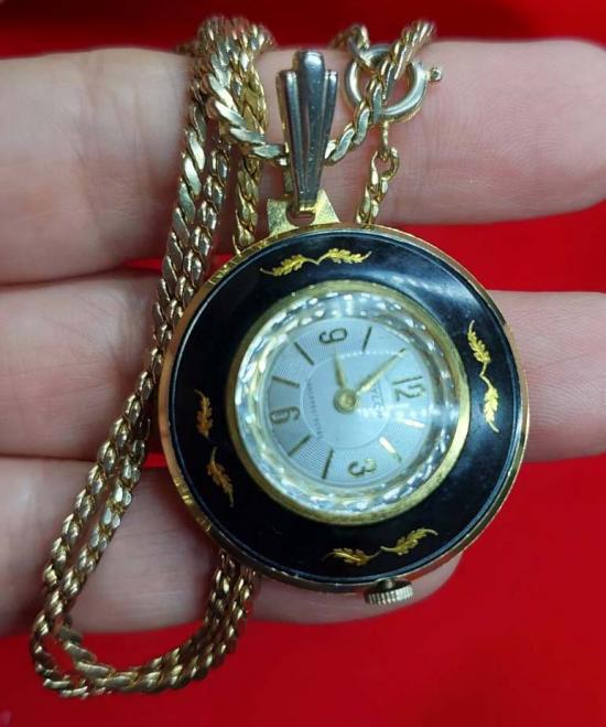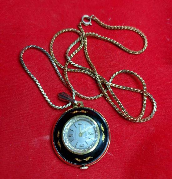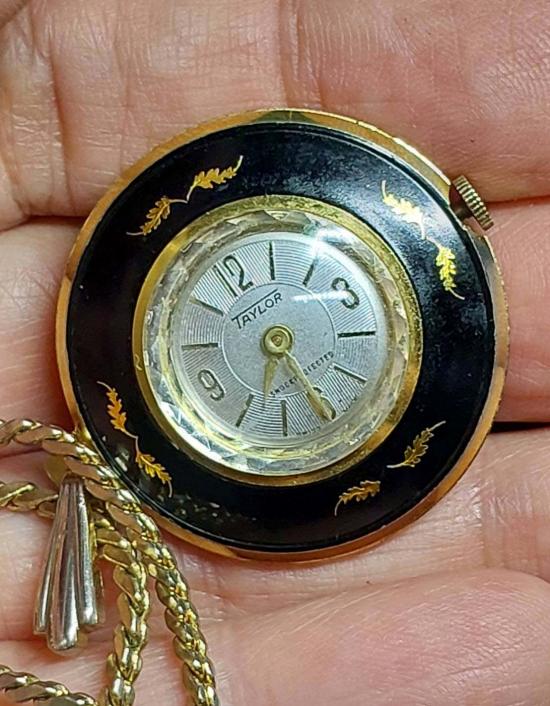 นาฬิกาพกหรือนาฬิกาจี้สตรีวินเทจแบรนด์ Taylor มีสร้อยสีทองเก่า ระบบไขลาน (Swiss Made) ใช้งานได้ปกติ