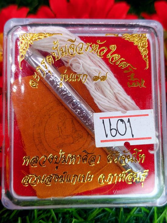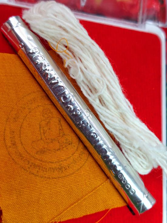 ตะกรุดปั๊มจีวรหัวใจเศรษฐี รุ่นแรก หลวงปู่ศิลา สิริจันโท ตะกรุดเงิน no.1601 |
