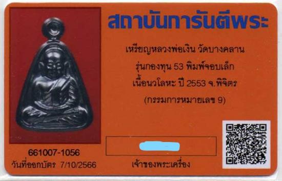 กรรมการ เหรียญหลวงพ่อเงิน วัดบางคลาน รุ่นกองทุน53 พิมพ์จอบเล็ก