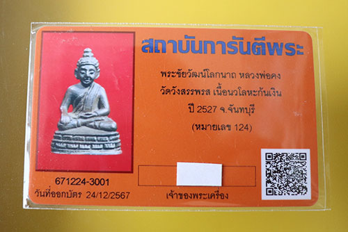 พระชัยวัฒน์โลกนาถ เนื้อนวะก้นเงิน หลวงพ่อคง วัดวังสรรพรส หมายเลข ๑๒๔ ปี 2526 สวยๆ เดิมๆ