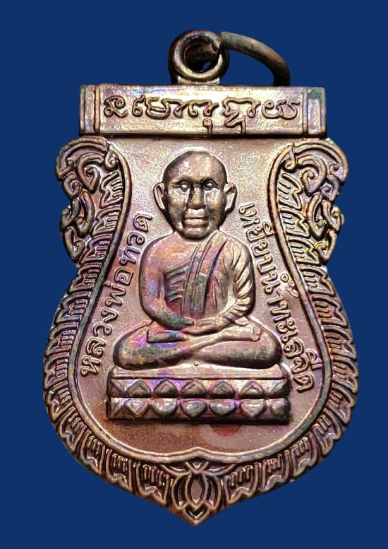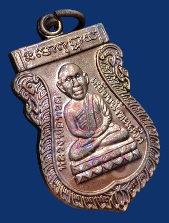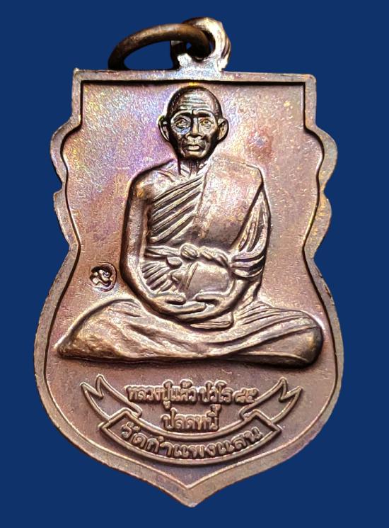 เหรียญปลดหนี้ หลวงปู่แผ้ว ปวโร หน้าหลวงปู่ทวด หลังหลวงปู่แผ้ว วัดรางหมัน ปี 2550 ผิวสวยๆ รุ้งๆ