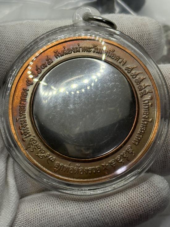 เหรียญคันฉ่องผ่าตะวันเหนือดวง พิมพ์ใหญ่ ขนาด 4.9 ซม. วัดพุทไธศวรรย์ เนื้อทองแดง สวยๆ เลี่ยมพร้อมแขวน 3