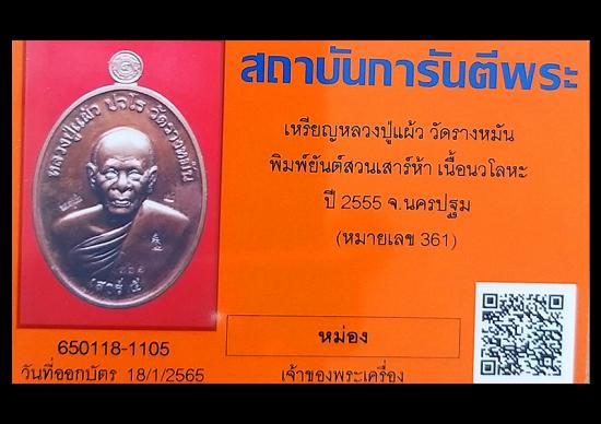 หลวงปู่แผ้ว ปวโร วัดรางหมัน ต.รางพิกุล อ.กำแพงแสน จ.นครปฐม ฉายา"เทพเจ้าแห่งเมืองกำแพงแสน"พระเครื่องของท่านได้ถูกกล่าวขานและเสาะแสวงหาเช่าบูชากันทั่วประเทศ พระเครื่องของท่านโดดเด่นมากด้านมหาอุด หยุดกระสุนปืน แคล้วคลาด ปลอดภัย คงกระพันชาตรี หลายคนพบประสบการณ์หนักๆ รอดตายราวปาฏิหาริย์ อย่างน่าเหลือเชื่อ หลายคนทดลองนำพระเครื่องของท่านไปทดสอบความขลังโดยใช้อาวุธปืนยิง แต่ก็ต้องตกตะลึงปืนยิงไม่ออก กระสุนปืนคาลำกล้อง ปากกระบอกปืนแตกก็พบได้บ่อยครั้ง จึงเป็นที่แน่ชัดแน่ใจชัดเจนแล้วว่า พระเครื่องหลวงปู่แผ้วทุกรุ่นปืนยิงไม่ออก!! แต่ถ้าจะถามว่าพระเครื่องรุ่นใดของหลวงปู่แผ้ว สุดยอดที่สุด!! เซียนพระและบรรดาลูกศิษย์จะรู้ในทันทีเลยว่า"เหรียญยันต์มเหศวรหรือยันต์สวน เสาร์ 5"พุทธคุณรุนแรงที่สุด!! เป็นเหรียญที่พบประสบการณ์หนักๆพบถี่และบ่อยที่สุด หลายท่านที่รอดตาย รอดพ้นภยันตราย ถึงกับยกนิ้วให้ว่า หลวงปู่แผ้ว ปวโร มหาอุดหยุดกระสุนปืนของจริงในยุคนี้ เหรียญรุ่นนี้พุทธคุณรุนแรงก็เนื่องมาจากหลวงปู่แผ้วท่านสั่งให้นำเหรียญรุ่นนี้ทั้งหมดไปไว้ในกุฏิของท่าน!! ท่านอธิษฐานจิตให้ทุกวันทุกคืนมาเป็นเวลานานนับปี พอมาถึงวันสำคัญของรุ่นนี้ วันเสาร์ที่ 5 เดือน 5 มะโรง 5 ปี 55 ซึ่งเป็นปีที่ตรงกับปีพุทธชยันตี หลวงปู่ท่านได้อธิษฐานจิตอย่างเต็มที่เต็มกำลังในวันมหาฤกษ์มหามงคลดังกล่าว พิธีสุดเข้มขลัง หลวงปู่ประจุพลังงานอันศักดิ์สิทธิ์ให้อย่างเต็มที่สุดๆท่านอธิษฐานจิตเสร็จเวลา 9.55 นาฬิกา พอดีเป๊ะ!! ที่สำคัญเหรียญรุ่นนี้หลวงปู่ท่านให้ประทับ"ยันต์มเหศวรหรือยันต์สวน"ไว้ด้านหลังเหรียญ ย่อมถือได้ว่าเป็นยันต์สุดยอดมหาอุดของท่าน เหรียญรุ่นนี้จึงสุดยอดที่สุด!! หลังอธิษฐานจิตเสร็จ กรรมการผู้จัดสร้างได้นำเหรียญรุ่นนี้ออกจากกุฏิหลวงปู่ แต่สิ่งที่ทุกคนต้องตกตะลึงและเป็นที่ฮือฮา! เมื่อกรรมการกลุ่มหนึ่งได้หยิบเหรียญเพื่อนำมาทดสอบพุทธคุณกันภายในวัดรางหมันทันที!!โดยมีสื่อมวลชนเป็นสักขีพยาน ใช้อาวุธปืนหลายขนาดยิง คนยิงสับไกปืนเต็มเหนี่ยว แต่ผลปรากฏว่าปืนยิงไม่ออก!! กี่กระบอกก็ยิงไม่ออก!! คนยิงทดสอบเกิดอาการตัวสั่น!! เหงื่อแตก!! หายใจเร็วผิดปกติ!! อาเจียน!! จึงรีบขึ้นไปกราบขอขมาหลวงปู่แผ้วบนกุฏิท่าน!! ท่านจึงรดน้ำมนต์ให้ ท่านบอกว่า"เหรียญรุ่นนี้ขลัง แรงมากนะ ฤกษ์ยามแข็งแบบนี้หาไม่ได้อีกแล้ว"หลังจากนั้นเป็นต้นมากระแสเหรียญเสาร์ 5 ของหลวงปู่แผ้วโด่งดังไปทั่วประเทศ ปัจจุบันนี้เริ่มหายาก มีราคาแพงทุกเนื้อ เป็นพระหล