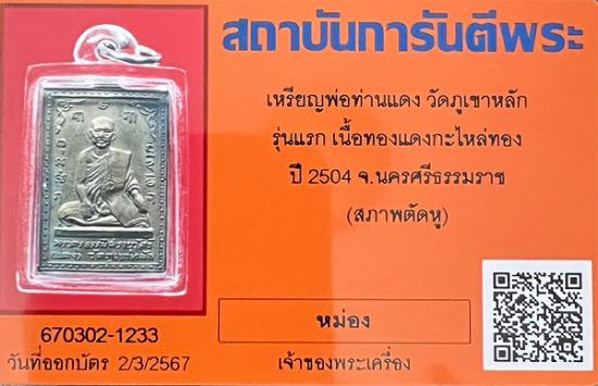เหรียญแลกชีวิต หลวงพ่อแดง วัดภูเขาหลัก รุ่นแรก ปี2504 หลังยันต์ใหญ่ ((นิยม)) กะไหล่ทอง สภาพสวย สภาพตัดหู เลี่ยมทอง