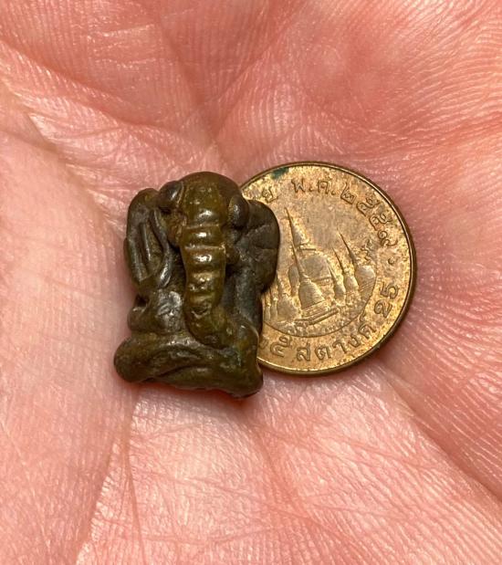 พระพิฆเนศองค์จิ๋ว พิมพ์ถือตรีศูลไม่ทราบที่ เนื้อโลหะขนาดห้อยคอได้ครับ