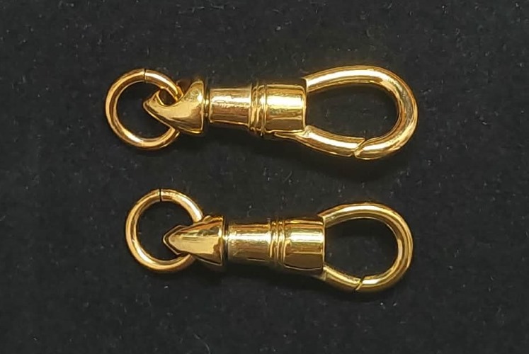 สปริงก้ามปูสแตนเลสเลเซอร์ทองหมุนได้ จำนวน 2 อัน ขนาดไม่รวมห่วง 2.6 ซ.ม. และ 2.3 ซ.ม. |