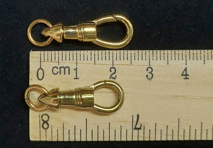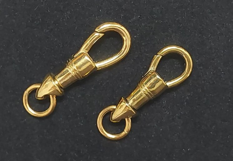 สปริงก้ามปูสแตนเลสเลเซอร์ทองหมุนได้ จำนวน 2 อัน ขนาดไม่รวมห่วง 2.6 ซ.ม. และ 2.3 ซ.ม.
