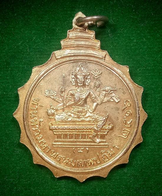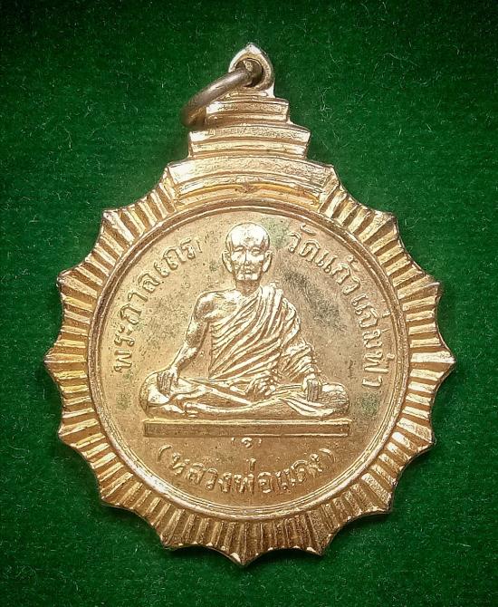 เหรียญพระกาลเถร หลวงพ่อแดง วัดแก้วแจ่มฟ้า หลังท้าวมหาพรหมเทพปฏิมา กะไหล่ทอง ปี2516