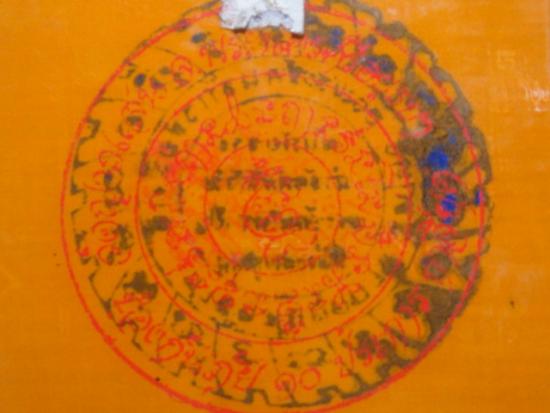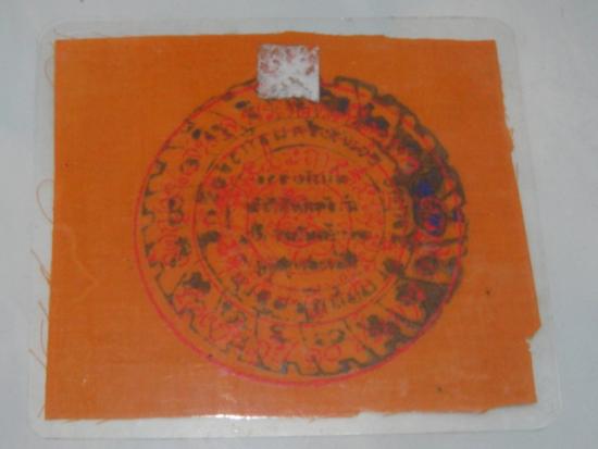 วัดใจเคาะเดียว.......100.......ผ้ายันต์จีวรพระรัตนจักรชัยสิทธิ์ กำจัดภัย กำจัดโรค หลวงปู่ชื้น พุทธสโร วัดญาณเสน อยุธยา ขนาดประมาณ 5.5 x 5 นิ้ว สวย เคลือบอย่างดี