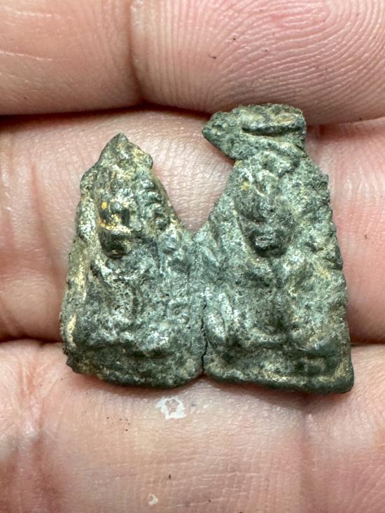 พระกรุ เนื้อชิน พิมพ์ 2 องค์ติดกัน เหมือนแผงตัด