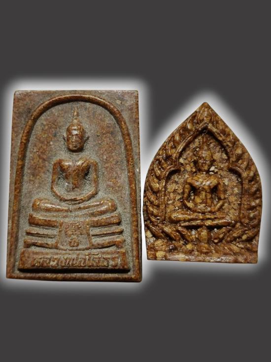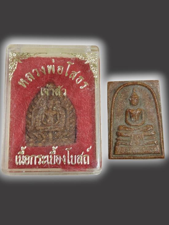 A5345.ชุดรวม 2 องค์ หลวงพ่อโสธร เนื้อกระเบื้องหลังคาโบสถ์ มีกล่องเดิม 1 องค์ เคาะเดียวเเดง