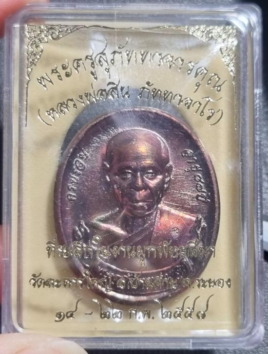 เหรียญที่ระลึกในงานผูกพัทธสีมา หลวงพ่อสิน วัดละหารใหญ่ จ.ระยอง ปี 2558 จมูกแตะนิดๆตามภาพ พร้อมกล่อง