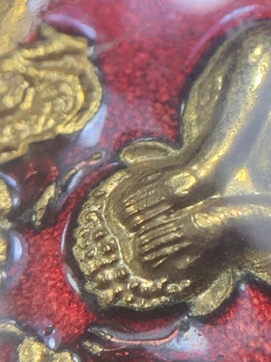 พระปิดตามังกรคู่ วัดศาลาครืน ปี 21 เนื้อทองแดงกะไหล่ทองลงยาแดง สวย ตอกโค๊ต มาพร้อมบัตรรับรองสบายใจได้ครับ