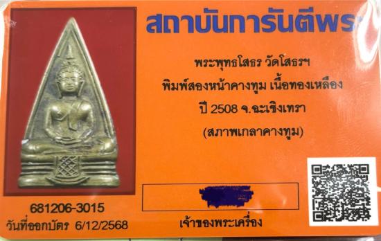 หลวงพ่อโสธร2หน้า ปี08 บล็อกคางทูม มีการแต่งเกลาคางครับ มีบัตรรับรอง