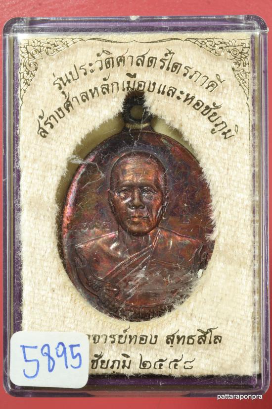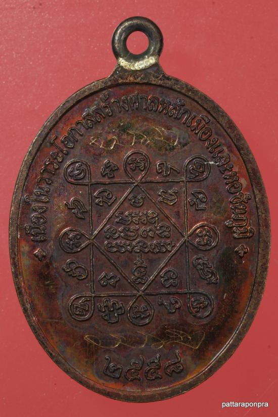 เหรียญหลวงพ่อทอง รุ่นประวัติศาตร์ไตรภาคี ปี 2558 เนื้อทองแดงมันปูมีจาร หมายเลข 5895